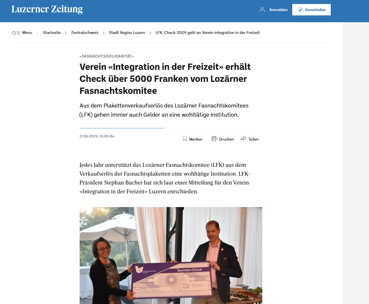Der Verein bleibt mit Integration in der Freizeit in Kontakt und erhält Unterstützung, falls Fragen
