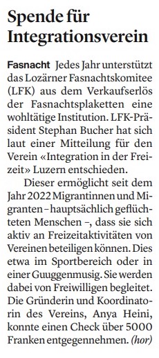 Der Verein bezweckt die Förderung der Integration von Migrant*innen im Kanton Luzern – hauptsächlich geflüchteten Menschen – durch die Beteiligung an Freizeitaktivitäten in Vereinen. Sie werden dabei von Freiwilligen begleitet. Existierende Vereine können einfacher neue Mitglieder gewinnen und profitieren langfristig von einer vielfältigen Mitgliederschaft.
