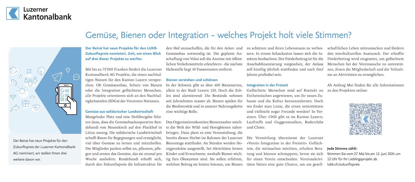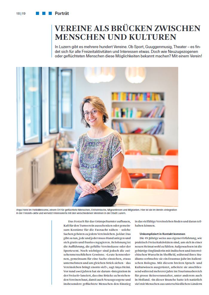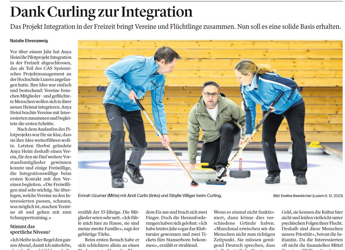 Der Verein bezweckt die Förderung der Integration von Migrant*innen im Kanton Luzern – hauptsächlich geflüchteten Menschen – durch die Beteiligung an Freizeitaktivitäten in Vereinen. Sie werden dabei von Freiwilligen begleitet. Existierende Vereine können einfacher neue Mitglieder gewinnen und profitieren langfristig von einer vielfältigen Mitgliederschaft.
